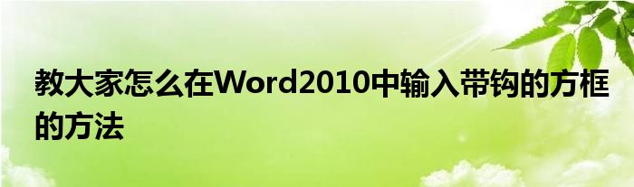 今天小編來給大家針對這個教大家怎么在Word2010中輸入帶鉤的方框的方法的問題來進行一個介紹,畢竟當下也是有諸多的小伙伴對于教大家怎么在Word2010中輸入帶鉤的方框的方法這個問題非常的重視的,下面大家可以看下具體的詳情