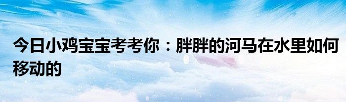 近日有關于今日小雞寶寶考考你:胖胖的河馬在水里如何移動的 的問題受到了很多網友們的關注,大多數網友都想要知道今日小雞寶寶考考你:胖胖的河馬在水里如何移動的 的具體情況,那么關于到今日小雞寶寶考考你:胖胖的河馬在水里如何移動的 的相關信息,小編也是在網上進行了一系列的信息,那么接下來就由小編來給大家分享下小編所收集到與今日小雞寶寶考考你:胖胖的河馬在水里如何移動的 相關的信息吧(以下內容來自于網絡非小編所寫,如有侵權請與站長聯系刪除)