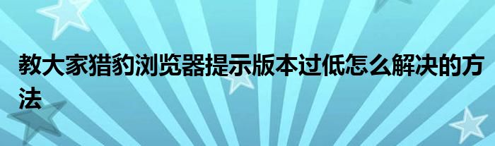 今天小編來給大家針對這個教大家獵豹瀏覽器提示版本過低怎么解決的方法的問題來進行一個介紹,畢竟當下也是有諸多的小伙伴對于教大家獵豹瀏覽器提示版本過低怎么解決的方法這個問題非常的重視的,下面大家可以看下具體的詳情