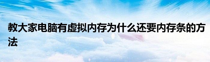 今天小編來給大家針對這個教大家電腦有虛擬內(nèi)存為什么還要內(nèi)存條的方法的問題來進行一個介紹,畢竟當下也是有諸多的小伙伴對于教大家電腦有虛擬內(nèi)存為什么還要內(nèi)存條的方法這個問題非常的重視的,下面大家可以看下具體的詳情
