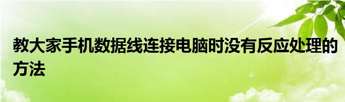 今天小編來給大家針對這個教大家手機數據線連接電腦時沒有反應處理的方法的問題來進行一個介紹,畢竟當下也是有諸多的小伙伴對于教大家手機數據線連接電腦時沒有反應處理的方法這個問題非常的重視的,下面大家可以看下具體的詳情