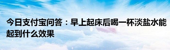 支付寶的螞蟻莊園小雞問答是每天都會有不同的答題出現,一方面豐富我們的知識,另一方面也增加了養護小雞的樂趣,就像今天支付寶螞蟻莊園小雞問答就出現了今日支付寶問答:早上起床后喝一杯淡鹽水能起到什么效果 問題,那么這樣的問題可能對于很多小伙伴們并不知道,因為每個人的知識面是不同的,所以有的小伙伴知道今日支付寶問答:早上起床后喝一杯淡鹽水能起到什么效果 問題,而有的小伙伴就不是很了解今日支付寶問答:早上起床后喝一杯淡鹽水能起到什么效果 問題,那么其實這些都不重要,既然今天小伙伴們看到了小編的這篇文章,小編自然是會為大家來解答下今日支付寶問答:早上起床后喝一杯淡鹽水能起到什么效果 問題了,那么有興趣的小伙伴就可以接著往下看,本文會給大家指出正確的答案的哦。
