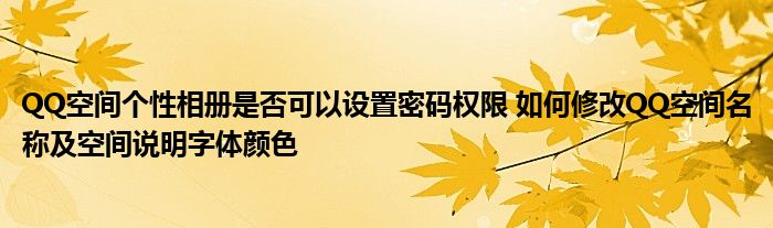 今天小編來給大家針對這個QQ空間個性相冊是否可以設置密碼權限 如何修改QQ空間名稱及空間說明字體顏色的問題來進行一個介紹,畢竟當下也是有諸多的小伙伴對于QQ空間個性相冊是否可以設置密碼權限 如何修改QQ空間名稱及空間說明字體顏色這個問題非常的重視的,下面大家可以看下具體的詳情