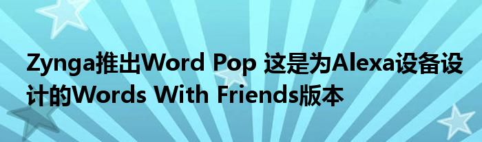 游戲開發(fā)商Zynga宣布推出Words With Friends Word Pop(Word Pop),這是一款基于Words With Friends的全新語音游戲,專門針對(duì)Alexa設(shè)備。