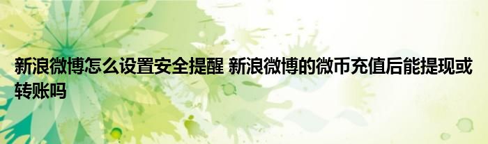 現(xiàn)在越來(lái)越多的小伙伴對(duì)于新浪微博怎么設(shè)置安全提醒 新浪微博的微幣充值后能提現(xiàn)或轉(zhuǎn)賬嗎這方面的問(wèn)題開(kāi)始感興趣,因?yàn)榇蠹椰F(xiàn)在都是想要熟知,那么既然現(xiàn)在大家都想要知道新浪微博怎么設(shè)置安全提醒 新浪微博的微幣充值后能提現(xiàn)或轉(zhuǎn)賬嗎,小編今天就來(lái)給大家針對(duì)這樣的問(wèn)題做個(gè)科普介紹吧。