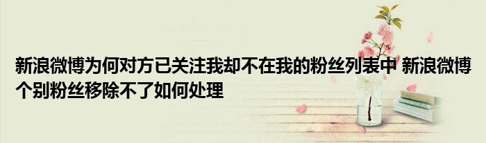 今天小編來給大家針對這個新浪微博為何對方已關注我卻不在我的粉絲列表中 新浪微博個別粉絲移除不了如何處理的問題來進行一個介紹,畢竟當下也是有諸多的小伙伴對于新浪微博為何對方已關注我卻不在我的粉絲列表中 新浪微博個別粉絲移除不了如何處理這個問題非常的重視的,下面大家可以看下具體的詳情