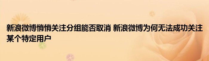 今天小編來給大家針對這個新浪微博悄悄關注分組能否取消 新浪微博為何無法成功關注某個特定用戶的問題來進行一個介紹,畢竟當下也是有諸多的小伙伴對于新浪微博悄悄關注分組能否取消 新浪微博為何無法成功關注某個特定用戶這個問題非常的重視的,下面大家可以看下具體的詳情
