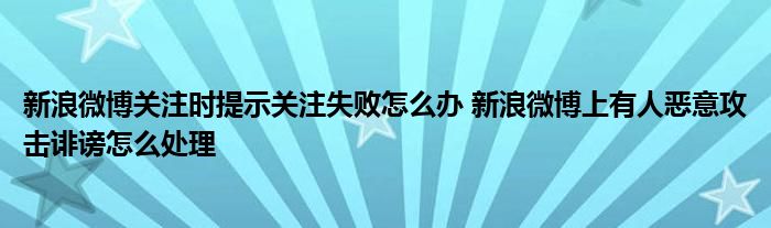 今天小編來給大家針對這個新浪微博關注時提示關注失敗怎么辦 新浪微博上有人惡意攻擊誹謗怎么處理的問題來進行一個介紹,畢竟當下也是有諸多的小伙伴對于新浪微博關注時提示關注失敗怎么辦 新浪微博上有人惡意攻擊誹謗怎么處理這個問題非常的重視的,下面大家可以看下具體的詳情