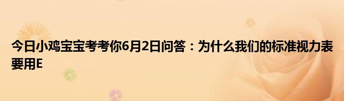 支付寶小雞莊園每日答題的答案是很多小伙伴們現在每天都必做的一件事,為自己的小雞賺取飼料,那么答題的過程當中很多小伙伴就會不知道答案,就好比今日的問題為今日小雞寶寶考考你6月2日問答:為什么我們的標準視力表要用E,那么大家不知道答案的情況下要是答錯了就領取不到飼料了,不過這里大家不需要擔心,小編就來給大家收集下今日小雞寶寶考考你6月2日問答:為什么我們的標準視力表要用E的答案,下面分享給大家吧。
