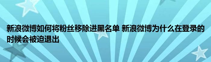 今天小編來給大家針對這個新浪微博如何將粉絲移除進黑名單 新浪微博為什么在登錄的時候會被迫退出的問題來進行一個介紹,畢竟當下也是有諸多的小伙伴對于新浪微博如何將粉絲移除進黑名單 新浪微博為什么在登錄的時候會被迫退出這個問題非常的重視的,下面大家可以看下具體的詳情