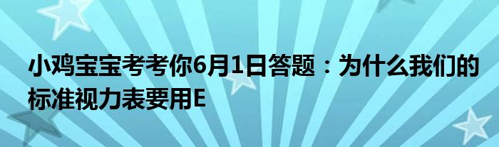 支付寶小雞莊園每日答題的答案是很多小伙伴們現在每天都必做的一件事,為自己的小雞賺取飼料,那么答題的過程當中很多小伙伴就會不知道答案,就好比今日的問題為小雞寶寶考考你6月1日答題:為什么我們的標準視力表要用E,那么大家不知道答案的情況下要是答錯了就領取不到飼料了,不過這里大家不需要擔心,小編就來給大家收集下小雞寶寶考考你6月1日答題:為什么我們的標準視力表要用E的答案,下面分享給大家吧。