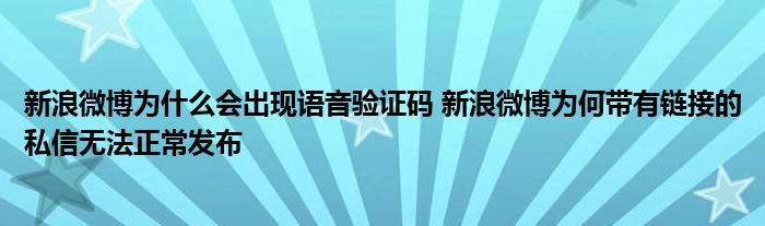 今天小編來給大家針對這個新浪微博為什么會出現(xiàn)語音驗證碼 新浪微博為何帶有鏈接的私信無法正常發(fā)布的問題來進(jìn)行一個介紹,畢竟當(dāng)下也是有諸多的小伙伴對于新浪微博為什么會出現(xiàn)語音驗證碼 新浪微博為何帶有鏈接的私信無法正常發(fā)布這個問題非常的重視的,下面大家可以看下具體的詳情