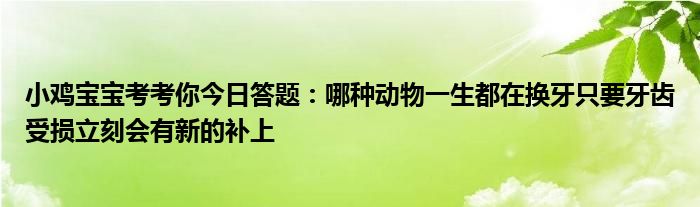 關(guān)于到現(xiàn)在小雞寶寶考考你今日答題:哪種動(dòng)物一生都在換牙這個(gè)話題,相信很多小伙伴都是非常有興趣了解的吧,因?yàn)檫@個(gè)話題也是近期非常火熱的,那么既然現(xiàn)在大家都想要知道小雞寶寶考考你今日答題:哪種動(dòng)物一生都在換牙,小編也是到網(wǎng)上收集了一些與小雞寶寶考考你今日答題:哪種動(dòng)物一生都在換牙相關(guān)的信息,那么下面分享給大家一起了解下吧。
