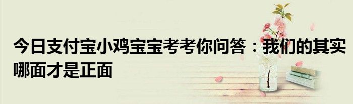 支付寶的螞蟻莊園小雞問答是每天都會有不同的答題出現,一方面豐富我們的知識,另一方面也增加了養護小雞的樂趣,就像今天支付寶螞蟻莊園小雞問答就出現了今日支付寶小雞寶寶考考你問答:我們的其實哪面才是正面問題,那么這樣的問題可能對于很多小伙伴們并不知道,因為每個人的知識面是不同的,所以有的小伙伴知道今日支付寶小雞寶寶考考你問答:我們的其實哪面才是正面問題,而有的小伙伴就不是很了解今日支付寶小雞寶寶考考你問答:我們的其實哪面才是正面問題,那么其實這些都不重要,既然今天小伙伴們看到了小編的這篇文章,小編自然是會為大家來解答下今日支付寶小雞寶寶考考你問答:我們的其實哪面才是正面問題了,那么有興趣的小伙伴就可以接著往下看,本文會給大家指出正確的答案的哦。
