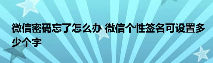 今天小編來給大家針對這個微信密碼忘了怎么辦 微信個性簽名可設置多少個字的問題來進行一個介紹,畢竟當下也是有諸多的小伙伴對于微信密碼忘了怎么辦 微信個性簽名可設置多少個字這個問題非常的重視的,下面大家可以看下具體的詳情