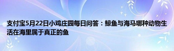 支付寶的螞蟻莊園小雞問答是每天都會有不同的答題出現,一方面豐富我們的知識,另一方面也增加了養護小雞的樂趣,就像今天支付寶螞蟻莊園小雞問答就出現了支付寶5月22日小雞莊園每日問答:鯨魚與海馬哪種動物生活在海里屬于真正的魚問題,那么這樣的問題可能對于很多小伙伴們并不知道,因為每個人的知識面是不同的,所以有的小伙伴知道支付寶5月22日小雞莊園每日問答:鯨魚與海馬哪種動物生活在海里屬于真正的魚問題,而有的小伙伴就不是很了解支付寶5月22日小雞莊園每日問答:鯨魚與海馬哪種動物生活在海里屬于真正的魚問題,那么其實這些都不重要,既然今天小伙伴們看到了小編的這篇文章,小編自然是會為大家來解答下支付寶5月22日小雞莊園每日問答:鯨魚與海馬哪種動物生活在海里屬于真正的魚問題了,那么有興趣的小伙伴就可以接著往下看,本文會給大家指出正確的答案的哦。
