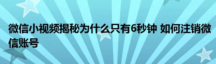 今天小編來給大家針對這個微信小視頻揭秘為什么只有6秒鐘 如何注銷微信賬號的問題來進行一個介紹,畢竟當下也是有諸多的小伙伴對于微信小視頻揭秘為什么只有6秒鐘 如何注銷微信賬號這個問題非常的重視的,下面大家可以看下具體的詳情