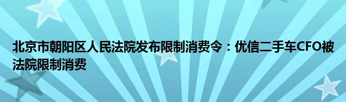 關(guān)于到現(xiàn)在北京市朝陽(yáng)區(qū)人民法院發(fā)布限制消費(fèi)令:優(yōu)信二手車(chē)CFO被法院限制消費(fèi)這個(gè)話題,相信很多小伙伴都是非常有興趣了解的吧,因?yàn)檫@個(gè)話題也是近期非常火熱的,那么既然現(xiàn)在大家都想要知道北京市朝陽(yáng)區(qū)人民法院發(fā)布限制消費(fèi)令:優(yōu)信二手車(chē)CFO被法院限制消費(fèi),小編也是到網(wǎng)上收集了一些與北京市朝陽(yáng)區(qū)人民法院發(fā)布限制消費(fèi)令:優(yōu)信二手車(chē)CFO被法院限制消費(fèi)相關(guān)的信息,那么下面分享給大家一起了解下吧。