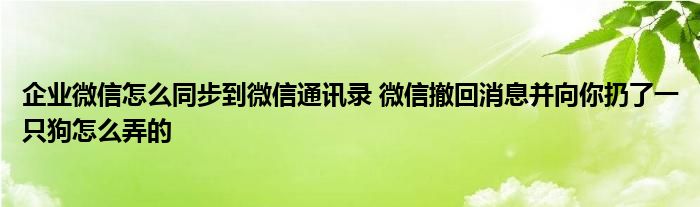 今天小編來給大家針對這個企業微信怎么同步到微信通訊錄 微信撤回消息并向你扔了一只狗怎么弄的的問題來進行一個介紹,畢竟當下也是有諸多的小伙伴對于企業微信怎么同步到微信通訊錄 微信撤回消息并向你扔了一只狗怎么弄的這個問題非常的重視的,下面大家可以看下具體的詳情