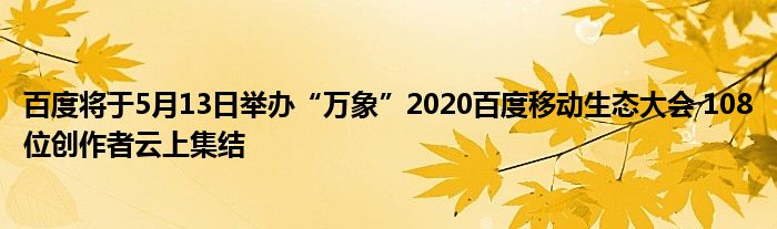 關(guān)于到現(xiàn)在百度將于5月13日舉辦“萬象”2020百度移動生態(tài)大會 108位創(chuàng)作者云上集結(jié)這個話題,相信很多小伙伴都是非常有興趣了解的吧,因為這個話題也是近期非常火熱的,那么既然現(xiàn)在大家都想要知道百度將于5月13日舉辦“萬象”2020百度移動生態(tài)大會 108位創(chuàng)作者云上集結(jié),小編也是到網(wǎng)上收集了一些與百度將于5月13日舉辦“萬象”2020百度移動生態(tài)大會 108位創(chuàng)作者云上集結(jié)相關(guān)的信息,那么下面分享給大家一起了解下吧。