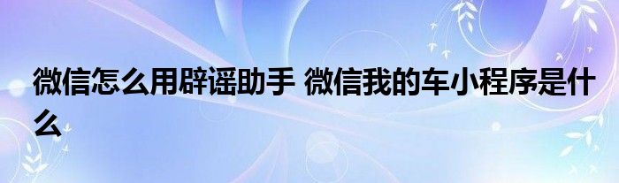 今天小編來給大家針對這個微信怎么用辟謠助手 微信我的車小程序是什么的問題來進行一個介紹,畢竟當下也是有諸多的小伙伴對于微信怎么用辟謠助手 微信我的車小程序是什么這個問題非常的重視的,下面大家可以看下具體的詳情