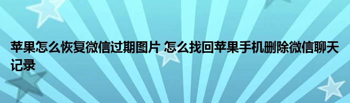 今天小編來給大家針對這個蘋果怎么恢復微信過期圖片 怎么找回蘋果手機刪除微信聊天記錄的問題來進行一個介紹,畢竟當下也是有諸多的小伙伴對于蘋果怎么恢復微信過期圖片 怎么找回蘋果手機刪除微信聊天記錄這個問題非常的重視的,下面大家可以看下具體的詳情