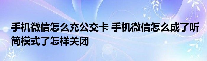 今天小編來給大家針對這個手機微信怎么充公交卡 手機微信怎么成了聽筒模式了怎樣關閉的問題來進行一個介紹,畢竟當下也是有諸多的小伙伴對于手機微信怎么充公交卡 手機微信怎么成了聽筒模式了怎樣關閉這個問題非常的重視的,下面大家可以看下具體的詳情