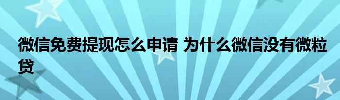 今天小編來給大家針對這個微信免費提現(xiàn)怎么申請 為什么微信沒有微粒貸的問題來進行一個介紹,畢竟當下也是有諸多的小伙伴對于微信免費提現(xiàn)怎么申請 為什么微信沒有微粒貸這個問題非常的重視的,下面大家可以看下具體的詳情