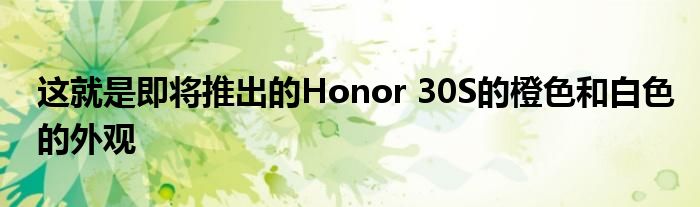 小編發現不少朋友對于 這就是即將推出的Honor 30S的橙色和白色的外觀 這方面的信息都比較感興趣,小編就針對 這就是即將推出的Honor 30S的橙色和白色的外觀 整理了一些相關方面的信息 在這里分享給大家。