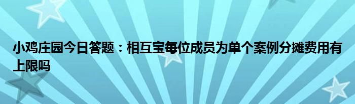 相信現(xiàn)在大家對于小雞莊園每日問答都是非常關心的吧,并且近期發(fā)現(xiàn)很多小伙伴都很想知道小雞莊園今日答題:相互寶每位成員為單個案例分攤費用有上限嗎這個問題,那么既然現(xiàn)在小伙伴們對于小雞莊園今日答題:相互寶每位成員為單個案例分攤費用有上限嗎都是非常好奇的,小編今天就在網(wǎng)上收集了一些關于小雞莊園今日答題:相互寶每位成員為單個案例分攤費用有上限嗎的一些相關信息,下面就由小編來給大家分享下吧。