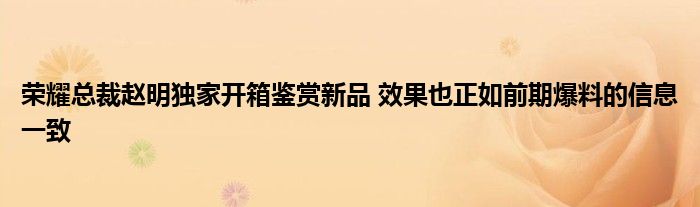關于到現在榮耀總裁趙明獨家開箱鑒賞新品 效果也正如前期爆料的信息一致這個話題,相信很多小伙伴都是非常有興趣了解的吧,因為這個話題也是近期非常火熱的,那么既然現在大家都想要知道榮耀總裁趙明獨家開箱鑒賞新品 效果也正如前期爆料的信息一致,小編也是到網上收集了一些與榮耀總裁趙明獨家開箱鑒賞新品 效果也正如前期爆料的信息一致相關的信息,那么下面分享給大家一起了解下吧。