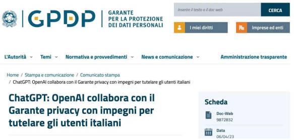 意大利數據保護局強調本次會議的目的:并不是阻礙人工智能以及技術創新發展,深遵循保護意大利以及歐洲個人數據的重要性。在此之前3月31日,意大利個人數據保護局就明令禁止使用聊天機器人ChatGPT,并且限制其開發公司處理意大利用戶的信息,展開了立案調查。已經有很多國家對于Open AI數據的安全性表示過擔憂了。