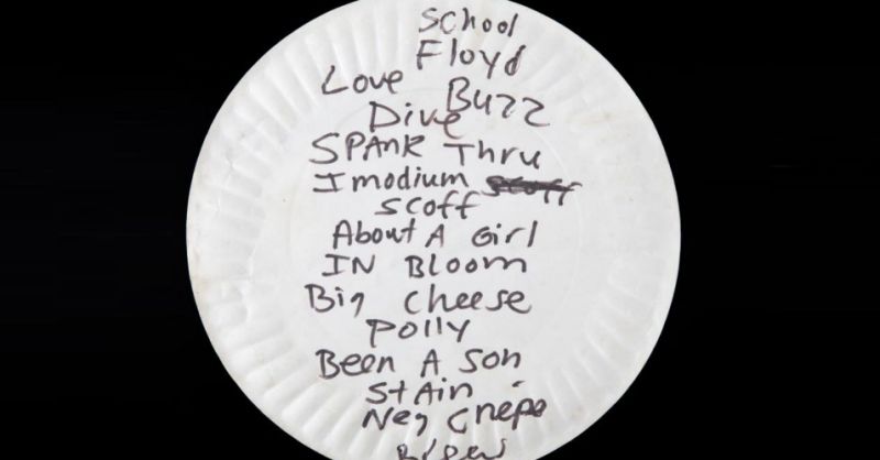 但這不僅僅是舊紙盤。與已故的Nirvana樂隊主唱Kurt Cobain一起吃了一塊比薩餅的名人一樣,然后在1990年4月23日華盛頓特區9:30俱樂部的表演上寫下了樂隊的名單。