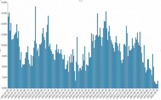 兜兜轉轉在9月下旬的時候滬指再次回到了3100點的下方,而且讓大家感覺到更加不安的就是整體的活躍資金似乎一瞬間都消失不見了,市場不斷的陷入一直萎縮的一個怪圈狀態,直到9月23日收盤,可以知道深滬兩市整體的成交額連續5個,交易日當前都達不到7,000億元,而且在9月21日的時候更創下了新低6382.08億元。