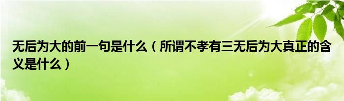 大家好,小帥來為大家解答以上問題。無后為大的前一句是什么,所謂不孝有三無后為大真正的含義是什么很多人還不知道,現在讓我們一起來看看吧!