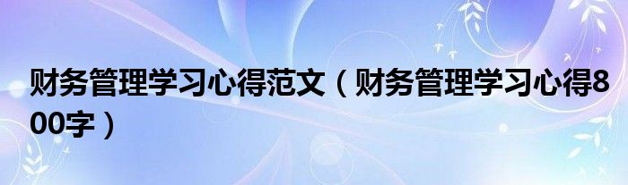大家好,小帥來為大家解答以上問題。財務管理學習心得范文,財務管理學習心得800字很多人還不知道,現(xiàn)在讓我們一起來看看吧!