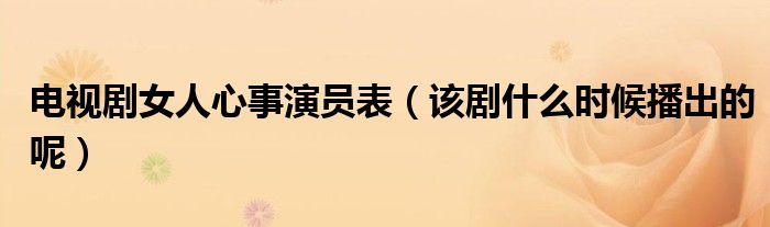 大家好,小帥來為大家解答以上問題。電視劇女人心事演員表,該劇什么時候播出的呢很多人還不知道,現(xiàn)在讓我們一起來看看吧!