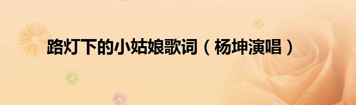大家好,小帥來為大家解答以上問題。路燈下的小姑娘歌詞,楊坤演唱很多人還不知道,現在讓我們一起來看看吧!