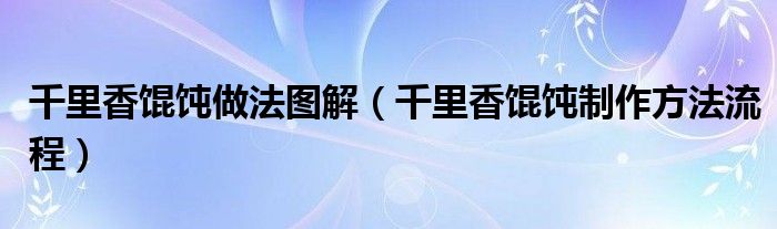 大家好,小帥來為大家解答以上問題。千里香餛飩做法圖解,千里香餛飩制作方法流程很多人還不知道,現在讓我們一起來看看吧!