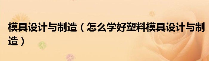 大家好,小帥來為大家解答以上問題。模具設計與制造,怎么學好塑料模具設計與制造很多人還不知道,現在讓我們一起來看看吧!