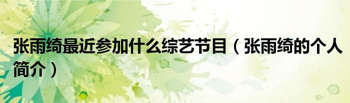 大家好,小帥來為大家解答以上問題。張雨綺最近參加什么綜藝節目,張雨綺的個人簡介很多人還不知道,現在讓我們一起來看看吧!