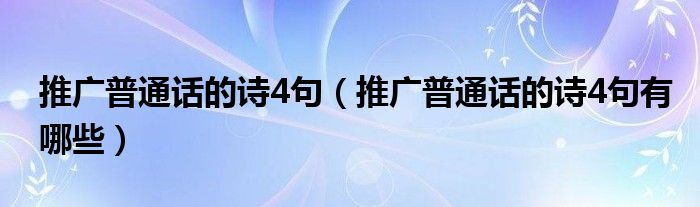 大家好,小帥來為大家解答以上問題。推廣普通話的詩4句,推廣普通話的詩4句有哪些很多人還不知道,現在讓我們一起來看看吧!
