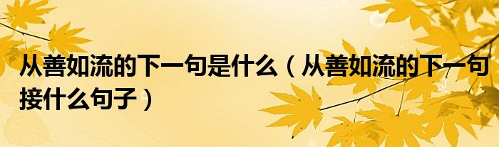 1、 下一句從善如流的話,就是以恨惡為仇。摘自《古今賢文》真相篇《滿招虧損,謙益。一旦知道了,就會改變,但是聽到了,就會開心。一戶不是一戶,流水不腐。好建議,仇恨。”