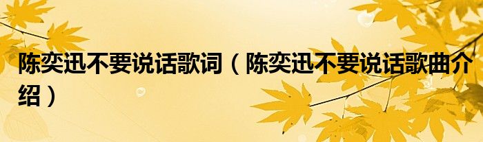 41、 《不要說話》是中國香港流行男歌手陳奕迅唱的一首歌。是小可寫的,Mac Chew編曲的。它被收錄在2008年6月30日陳奕迅環(huán)球唱片公司發(fā)行的專輯《不想放手》中。這首歌是陳奕迅為電影《時尚先生》錄制的主題曲。
