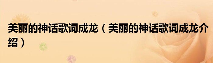 大家好,小帥來為大家解答以上問題。美麗的神話歌詞成龍,美麗的神話歌詞成龍介紹很多人還不知道,現在讓我們一起來看看吧!