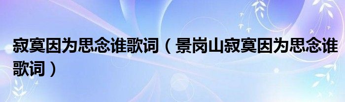 大家好,小帥來為大家解答以上問題。寂寞因?yàn)樗寄钫l歌詞,景崗山寂寞因?yàn)樗寄钫l歌詞很多人還不知道,現(xiàn)在讓我們一起來看看吧!