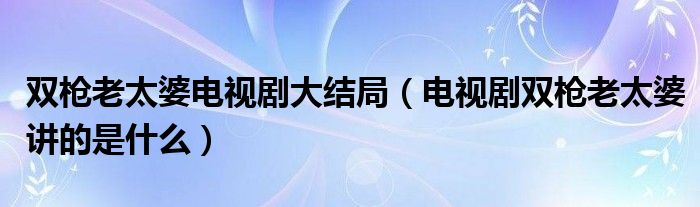 大家好,小帥來為大家解答以上問題。雙槍老太婆電視劇大結局,電視劇雙槍老太婆講的是什么很多人還不知道,現在讓我們一起來看看吧!