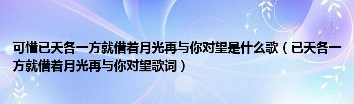 大家好,小帥來為大家解答以上問題。可惜已天各一方就借著月光再與你對(duì)望是什么歌,已天各一方就借著月光再與你對(duì)望歌詞很多人還不知道,現(xiàn)在讓我們一起來看看吧!