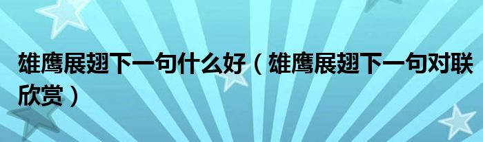 大家好,小帥來為大家解答以上問題。雄鷹展翅下一句什么好,雄鷹展翅下一句對(duì)聯(lián)欣賞很多人還不知道,現(xiàn)在讓我們一起來看看吧!