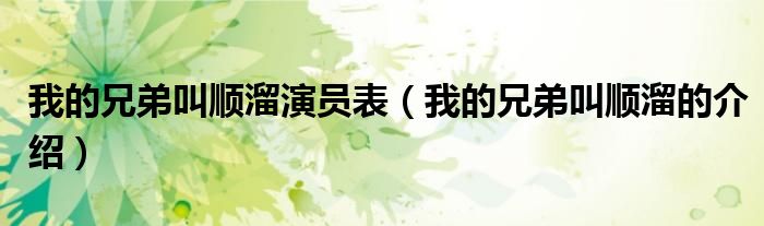 大家好,小帥來為大家解答以上問題。我的兄弟叫順溜演員表,我的兄弟叫順溜的介紹很多人還不知道,現在讓我們一起來看看吧!